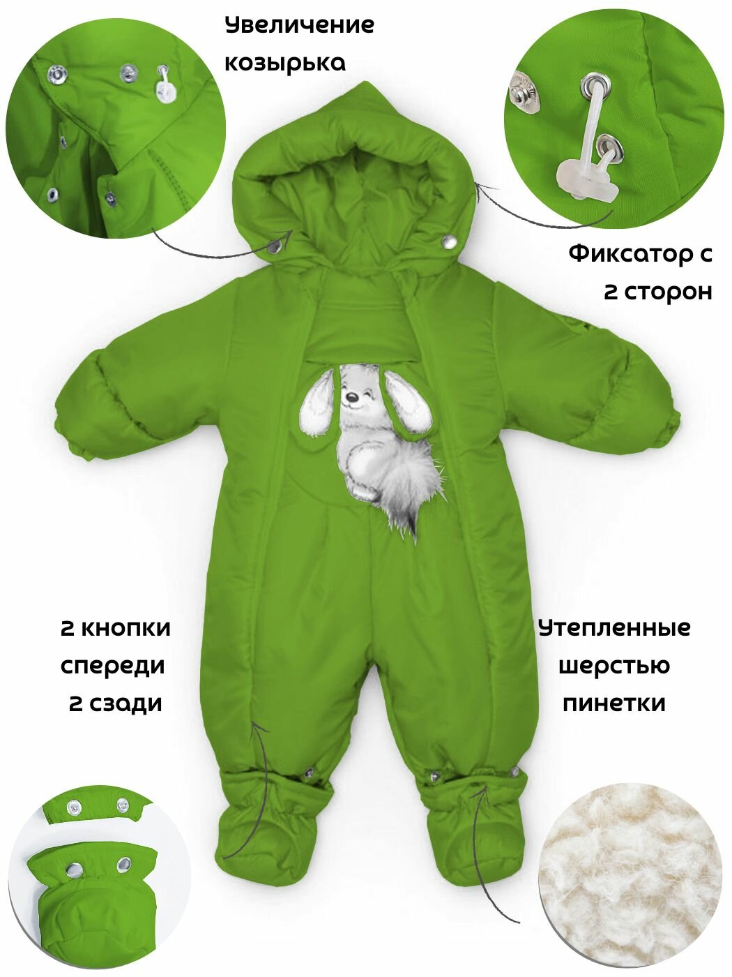 Комбинезон-трансформер, Зима, Зеленый уценка , арт.147У (68 см) информация: