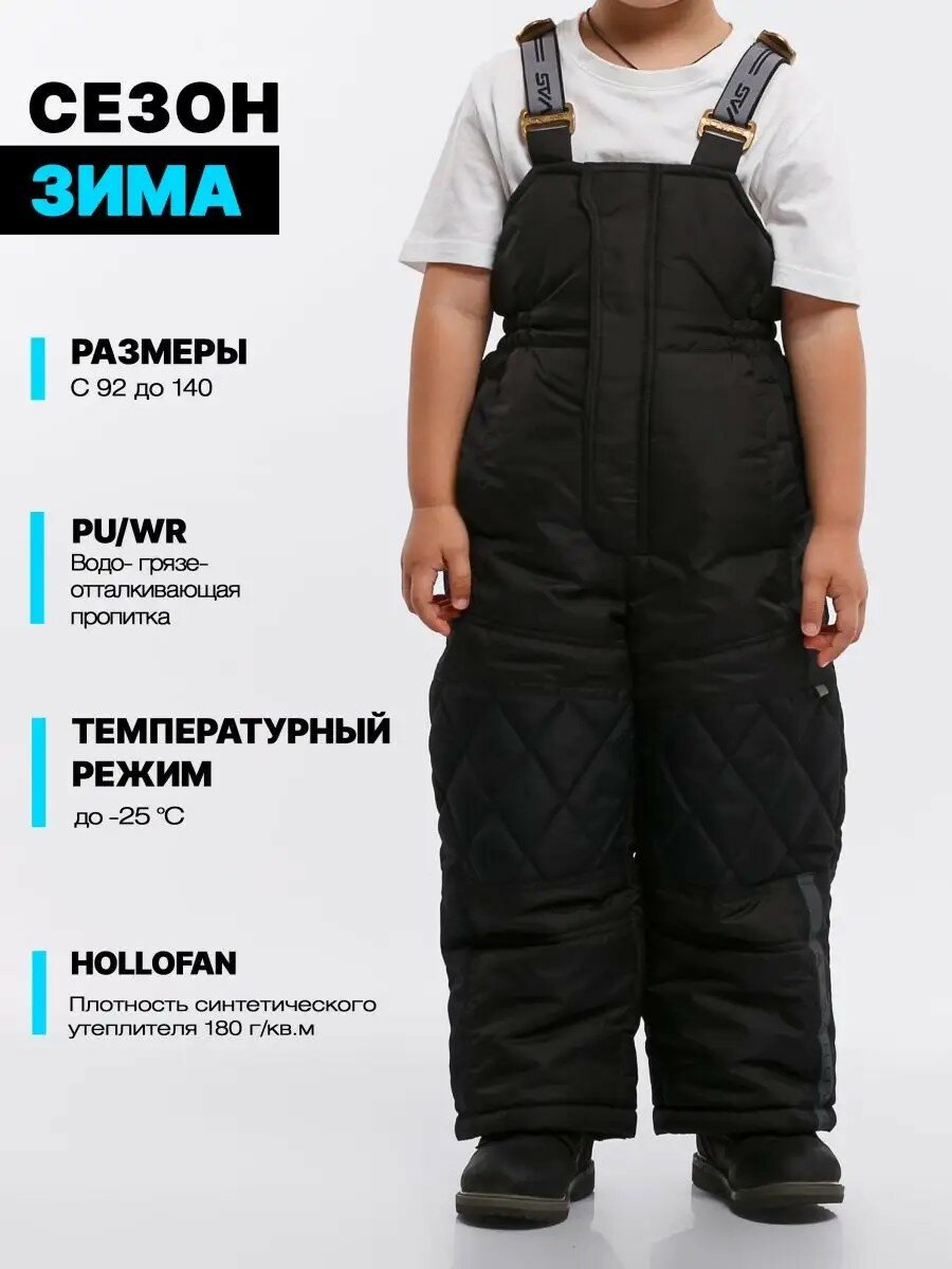 Зимний черный утепленный полукомбинезон для мальчика болоневый непромокаемый из мембраны на резинке с бретелями KAYSAROW Тимофей рост 104 информация: