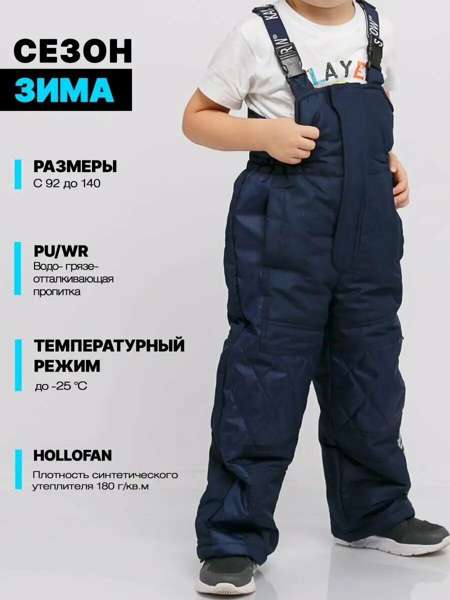Зимний темно-синий утепленный полукомбинезон для мальчика болоневый непромокаемый из мембраны на резинке с бретелями KAYSAROW Тимофей рост 98 информация: