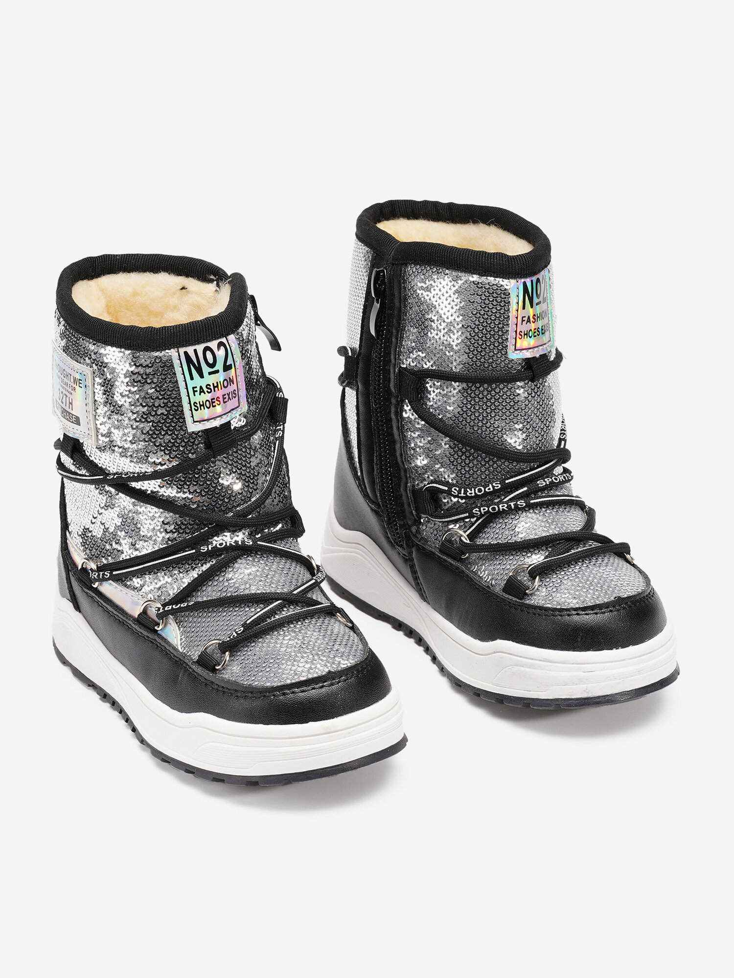 Зимние ботинки для девочки с мехом JONG GOLF черно-серебристые 22 размер информация: