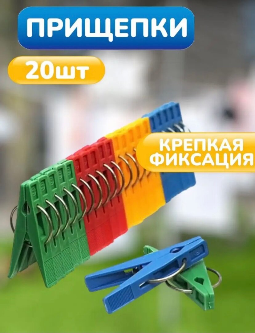 Прищепки для белья пластиковые. Набор 20 штук разного цвета, классические информация: