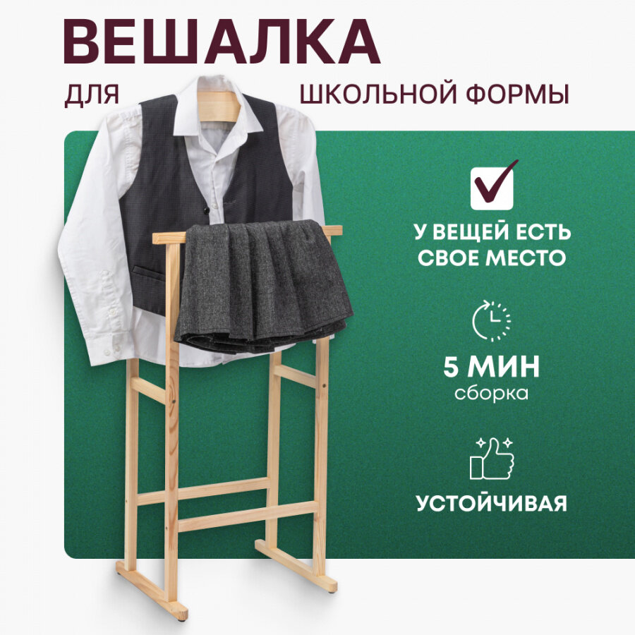 10 цен на Вешалка напольная деревянная 96 х 45 х 30 см костюмная стойка плечики для одежды и аксессуаров