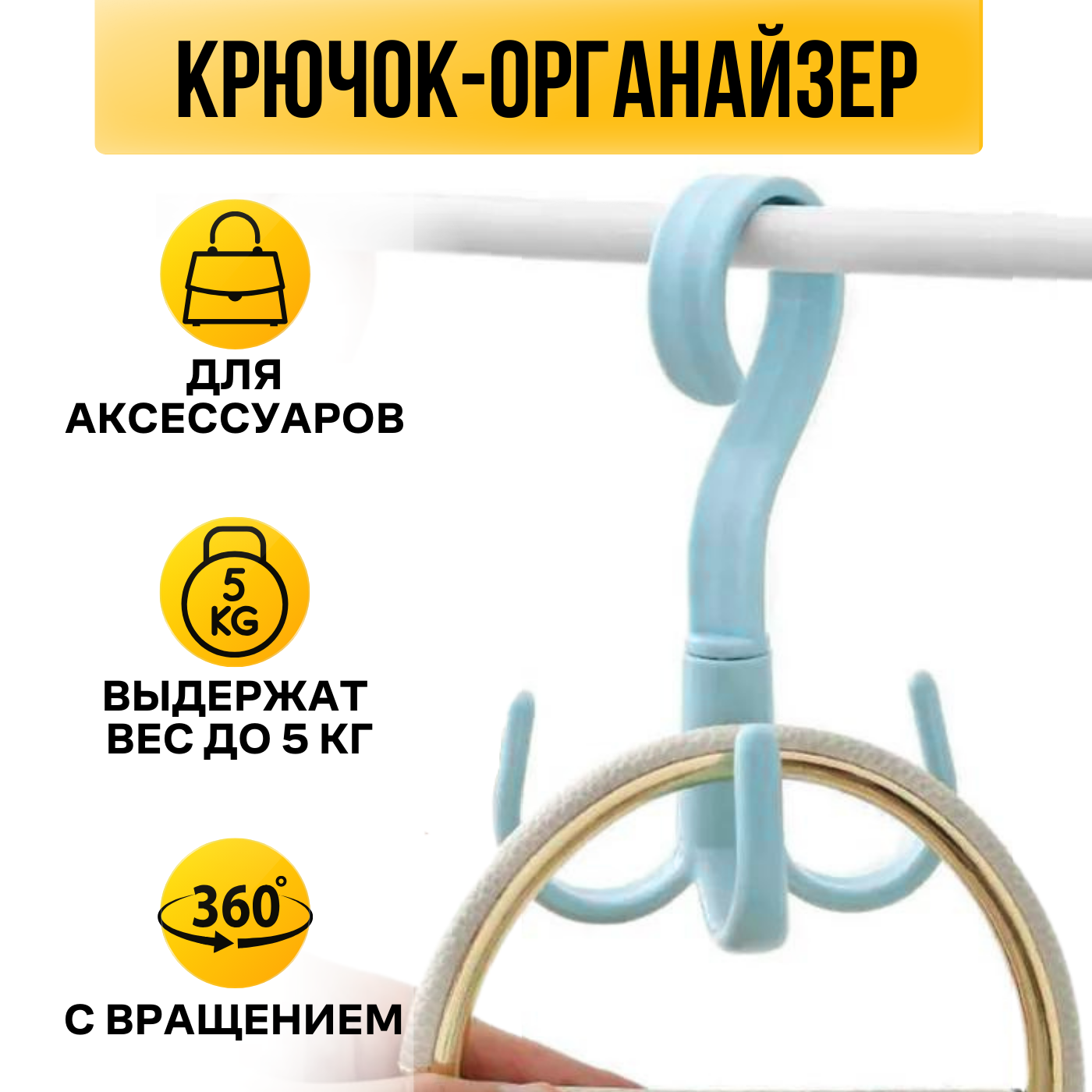 | Дополнительная информация | Вешалка для шкафа с вращением, Поворотный крючок органайзер для одежды, ремней, сумок, платков, шарфов |