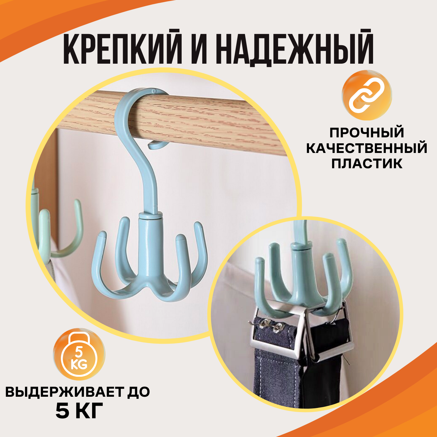 10 цен на Вешалка для шкафа с вращением, Поворотный крючок органайзер для одежды, ремней, сумок, платков, шарфов (голубой)