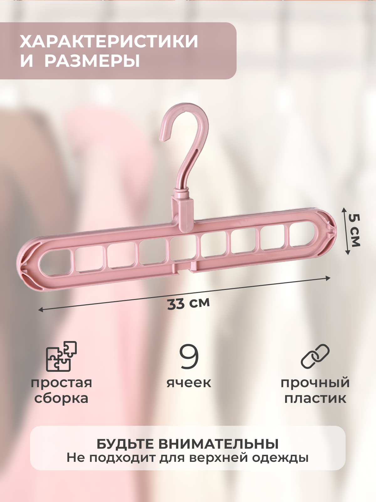 Многоуровневые плечики для хранения одежды АКир, набор 3 шт розовый информация: