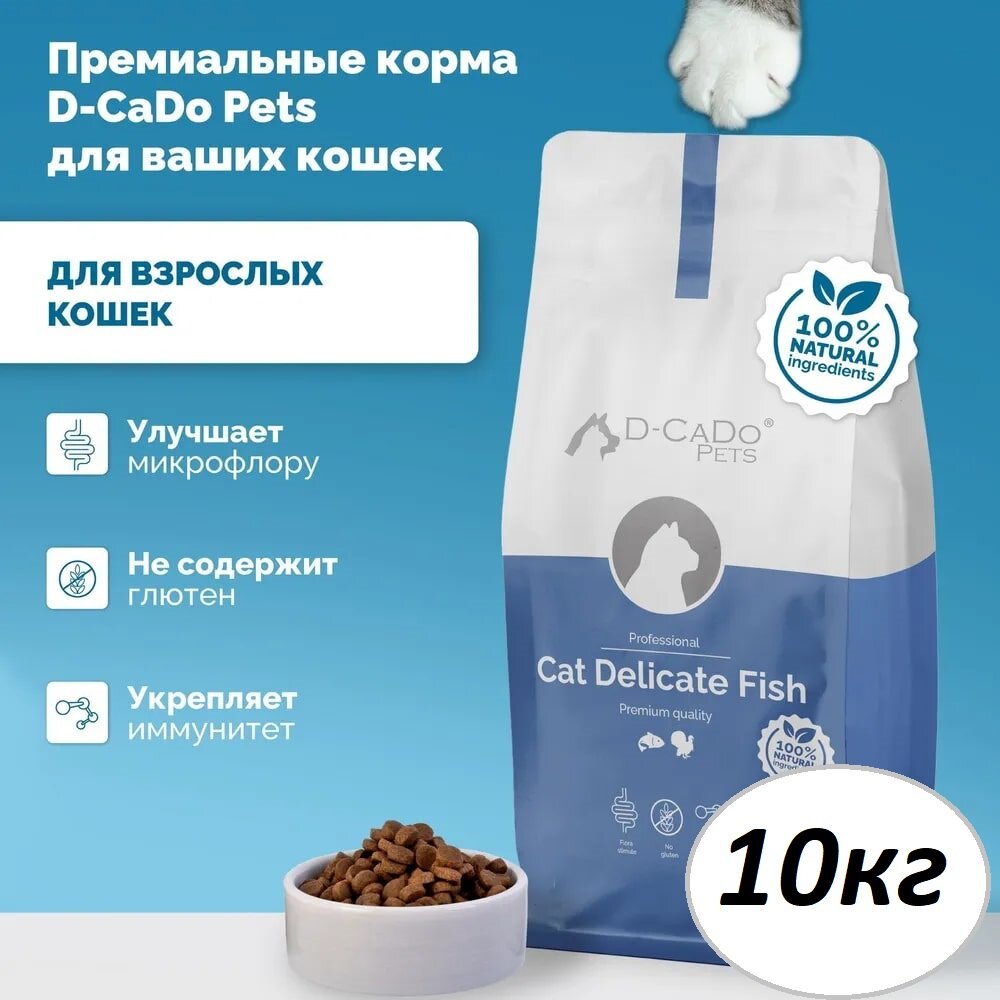10 цен на D-CADO KAT DELICATE FISH Корм для взрослых кошек с атлантической рыбой и индейкой 10кг