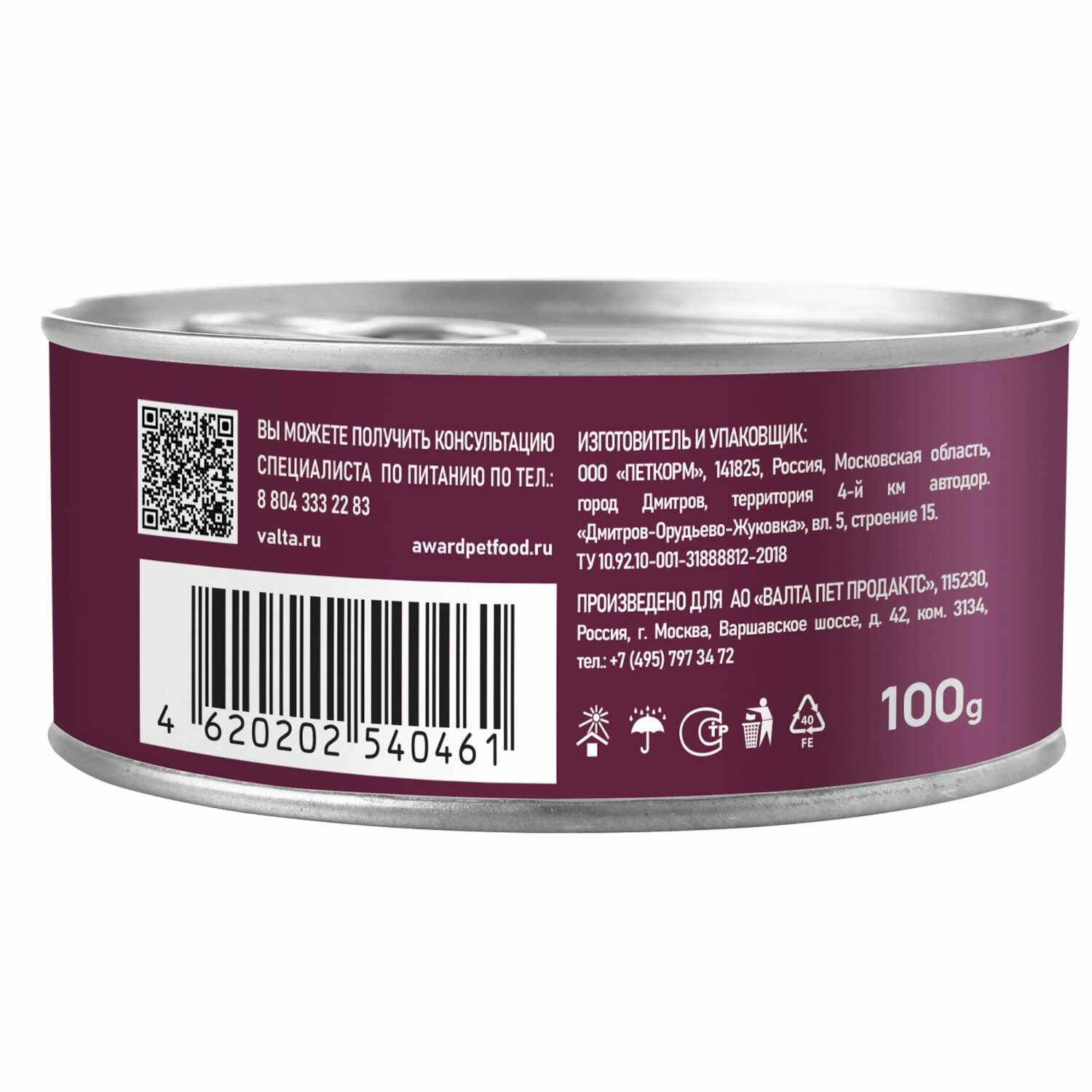 Влажный корм AWARD для взрослых кошек паштет из утки с клюквой 100г информация: