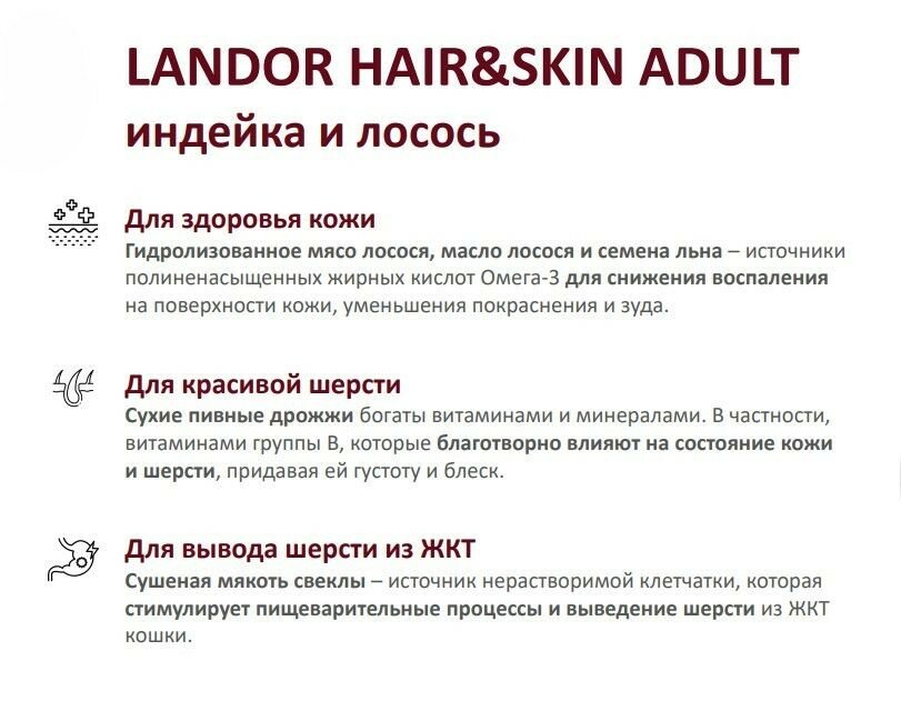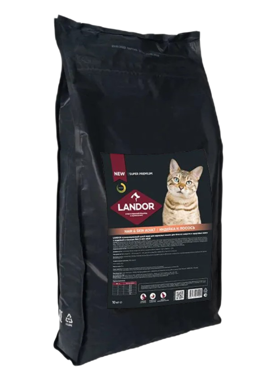Корм для кошек сухой LANDOR, для шерсти и здоровья кожи, c индейкой и лососем, 10кг информация:
