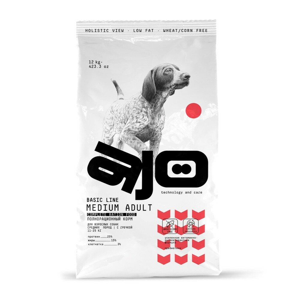 AJO Medium Adult полнорационный корм для взрослых собак средних пород Говядина и оленина, 12 кг. информация: