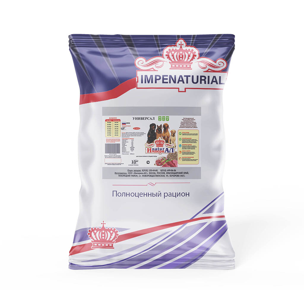 Сухой корм Универсал для собак средних и крупных пород с мясом ягнёнка Империал 10кг информация: