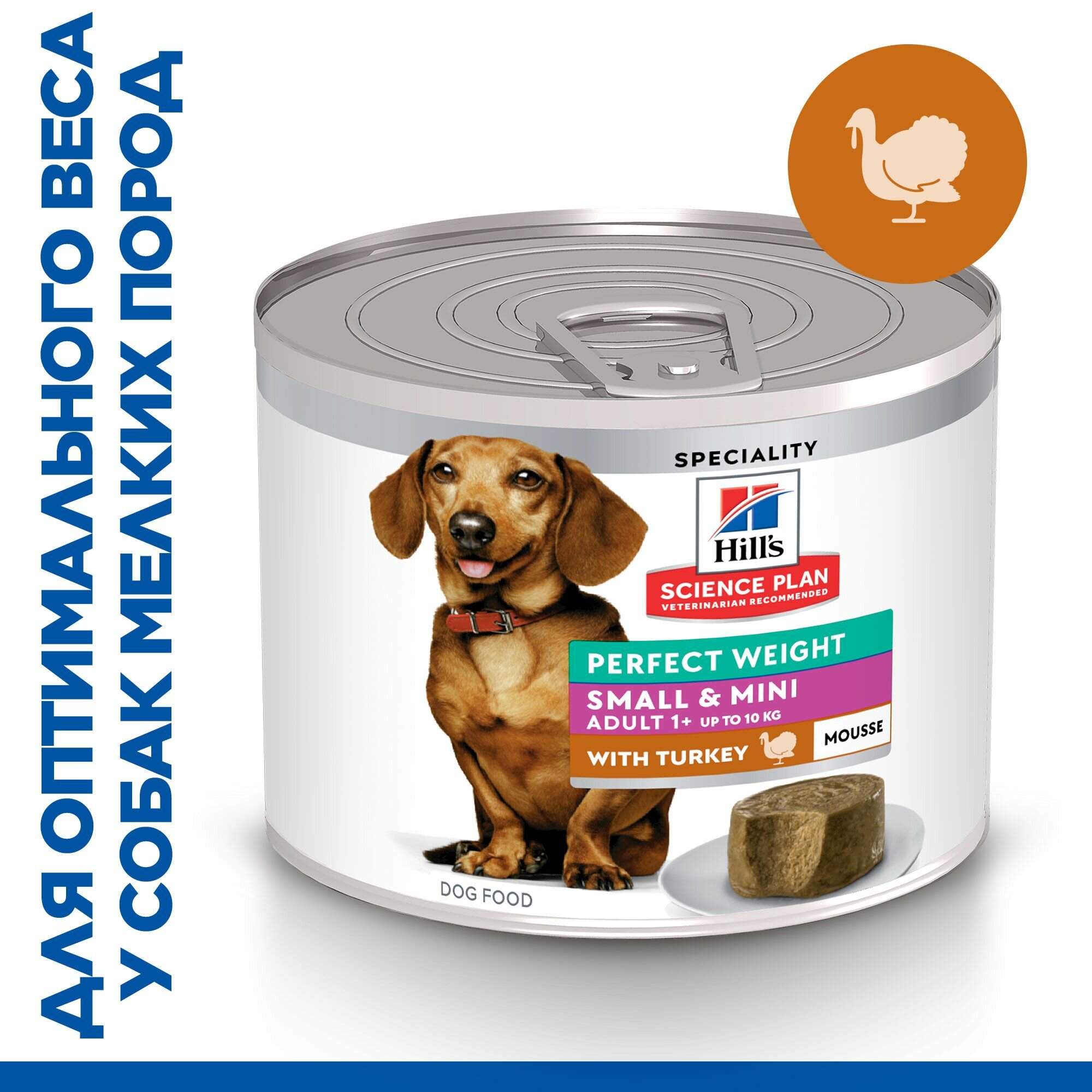 Влажный корм (консерва) Hill's Science Plan Small&Mini Perfect Weight для взрослых собак мелких пород с индейкой, 200г информация: