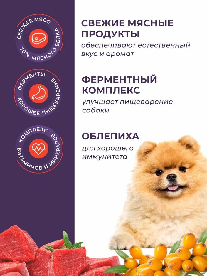 Сухой корм для шпицев GRANDHOLI холистик "Говядина с ягодами" 1,5кг информация: