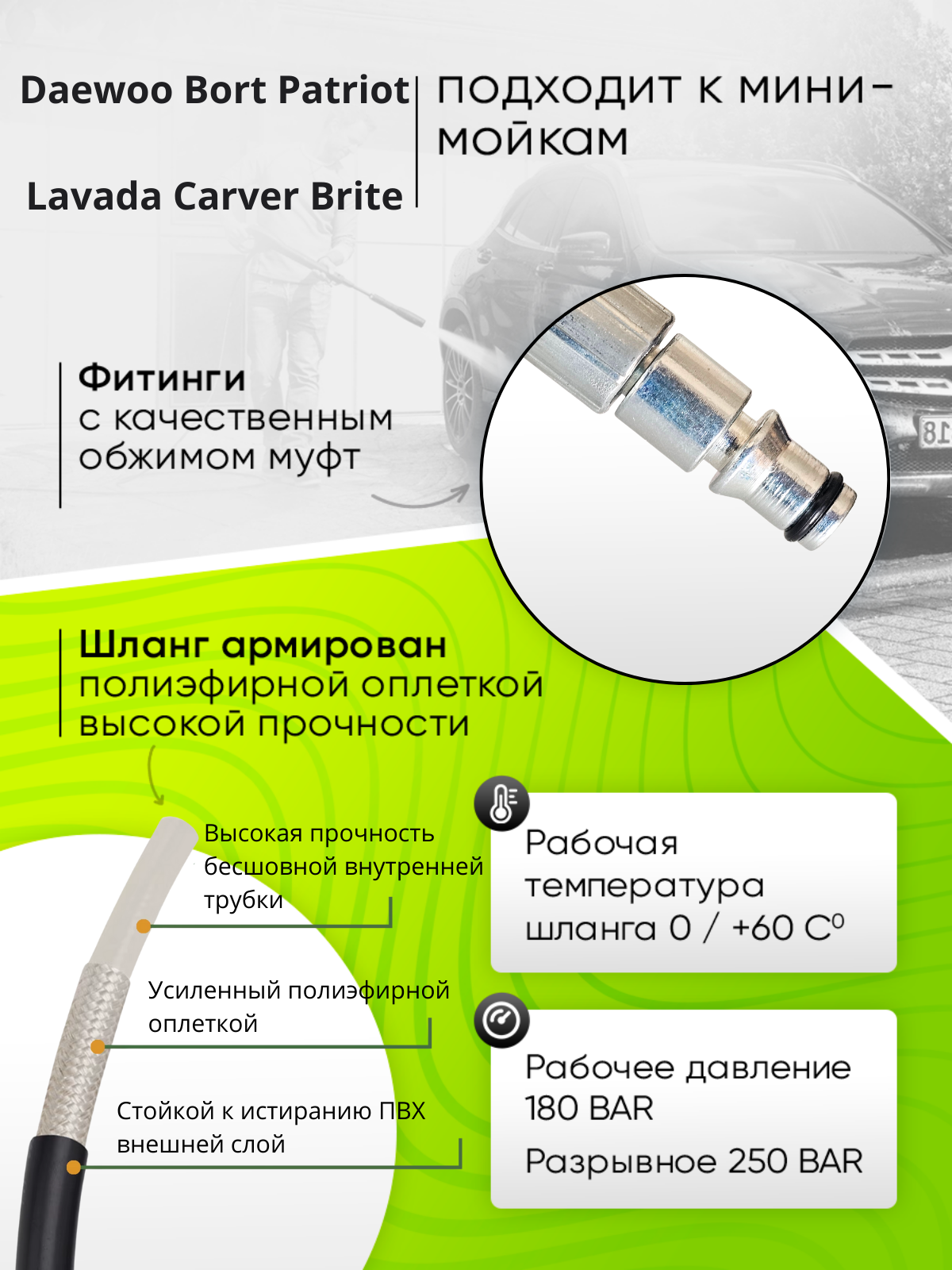 Отзывы на Шланг высокого давления ПВХ для Daewoo Борт Patriot Lavada Carver Brite 10м