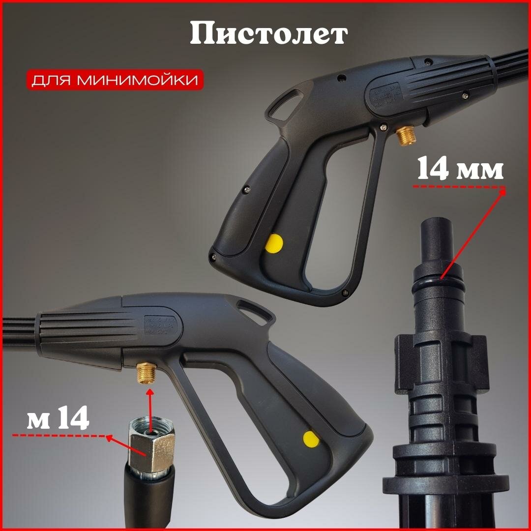 Пистолет для мойки высокого давления совместим с Denzel, Интерскол, Bort, Lavada, Huter, Daewoo, Champion, Elitech информация: