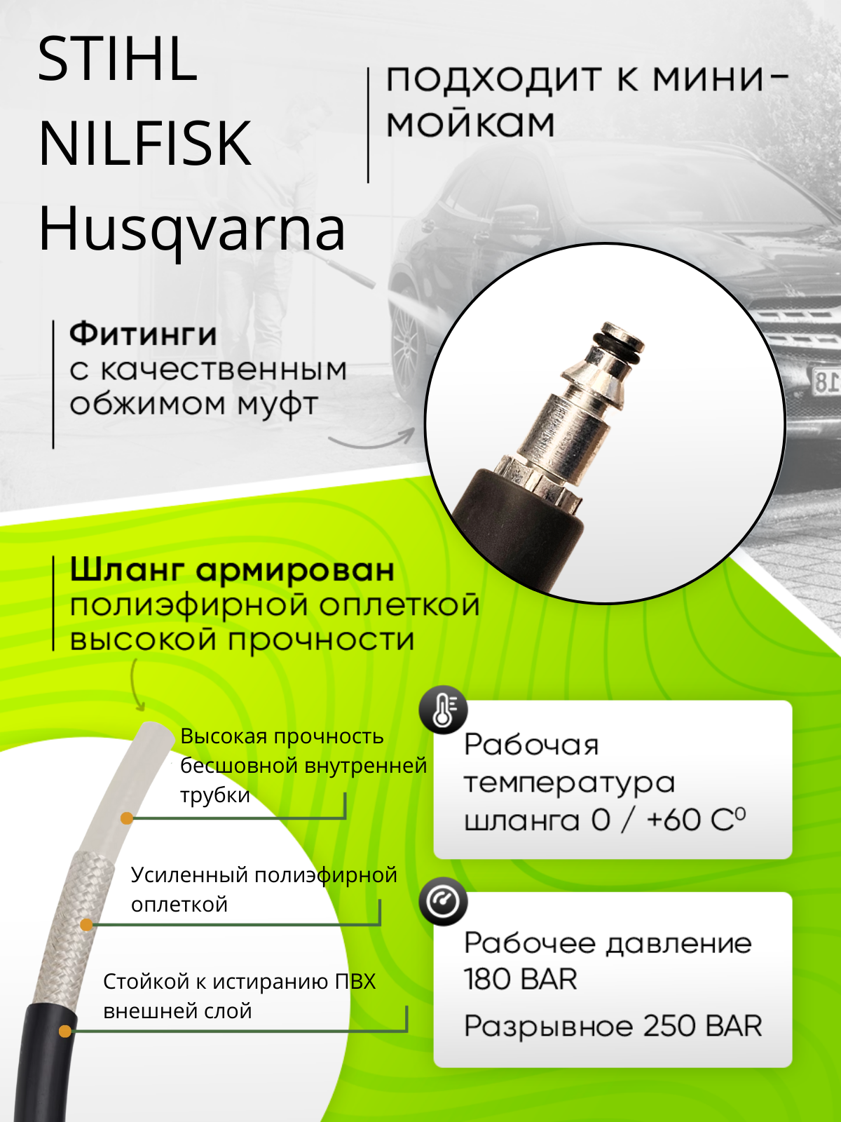Шланг высокого давления для Stihl RE 88-163 (ПВХ) 10 метров информация: