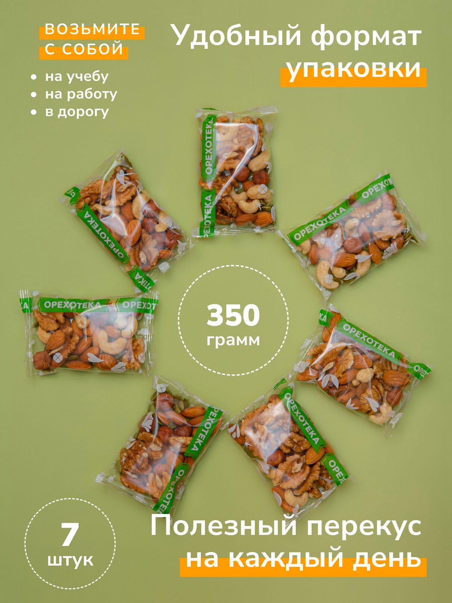 Смесь из сырых орехов "Чемпион" 10 пакетов по 50 гр. (кешью, фундук, миндаль, грецкий, семена тыквы) / Перекус на учёбу и работу 500 г. орехотека 1 290 ₽