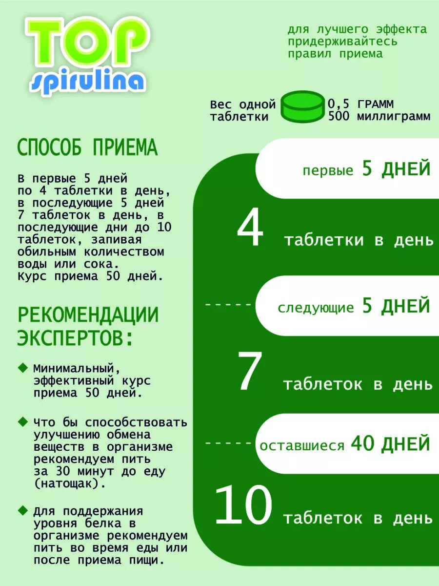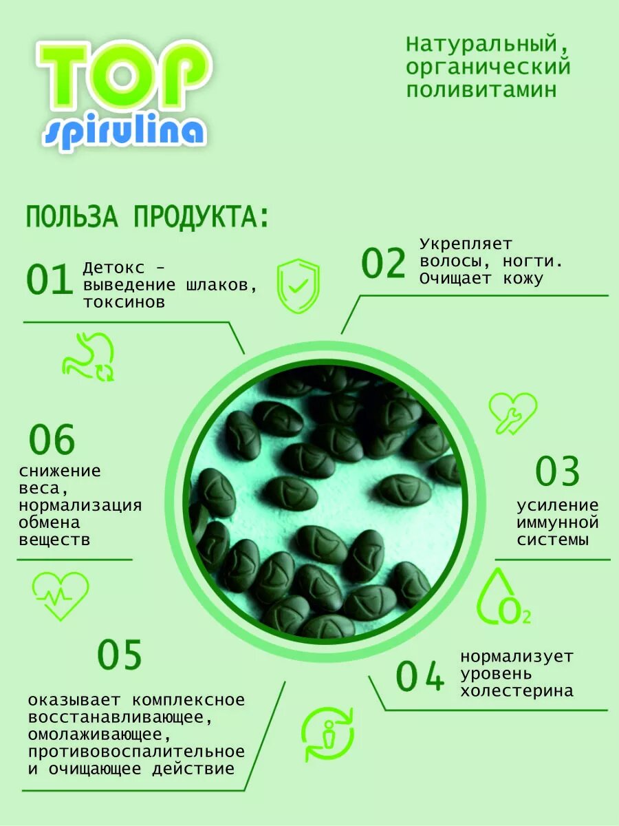 Спирулина ТОП таблетки 1кг - 1000шт информация: