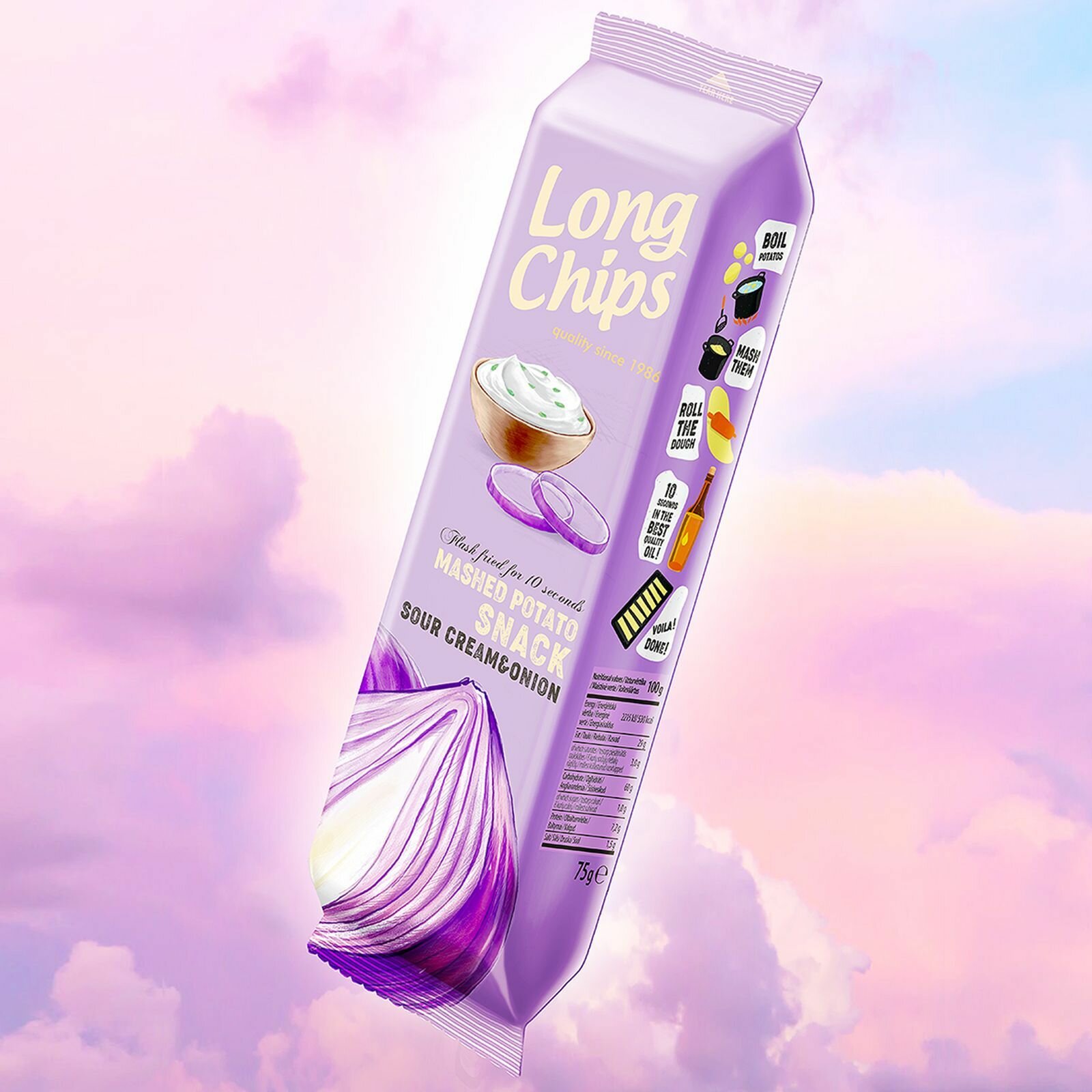 10 цен на Long Chips Чипсы, картофельные вкус сметана и лук 20*75г