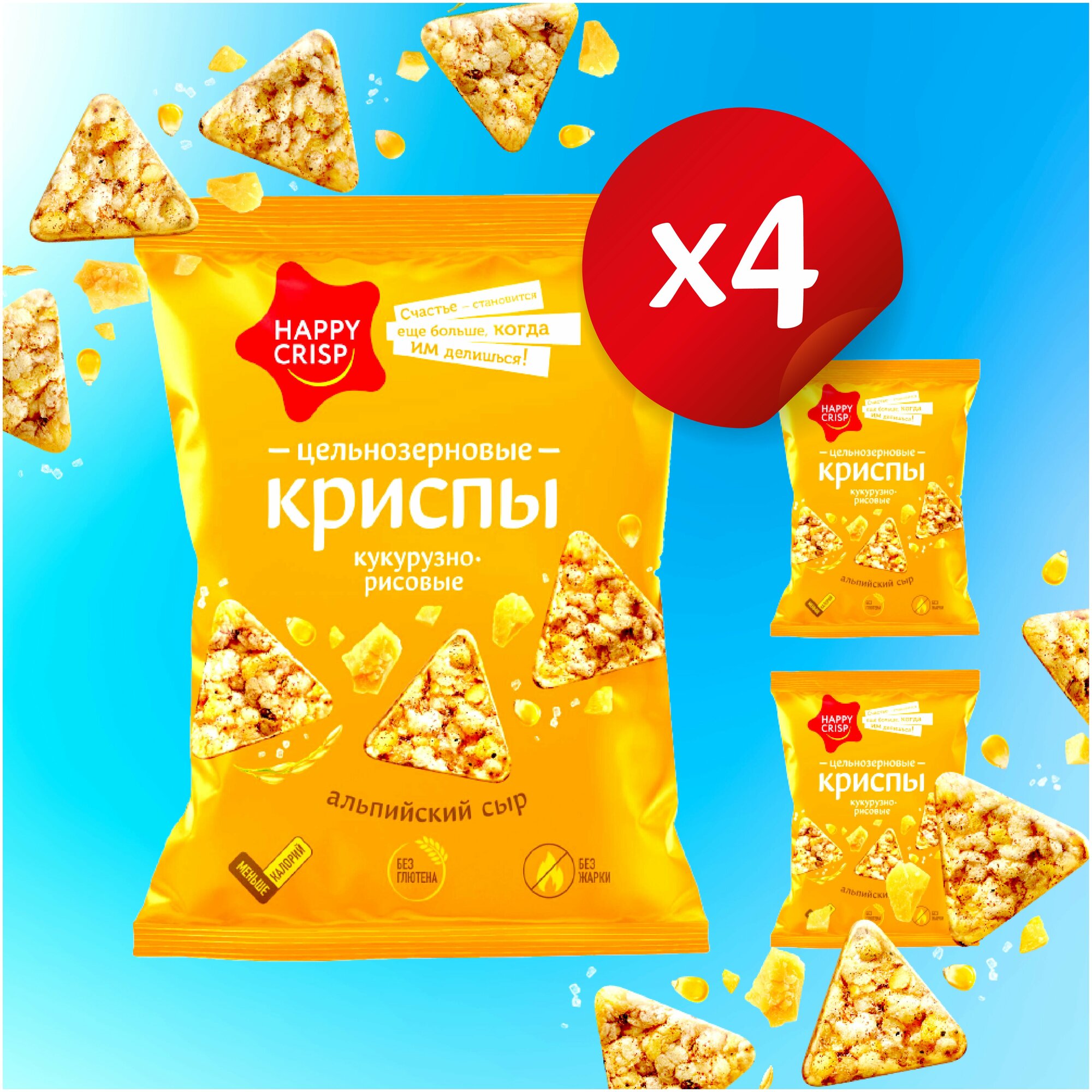 10 цен на Чипсы (криспы) цельнозерновые HAPPY CRISP Альпийский сыр, 4 шт по 100 г
