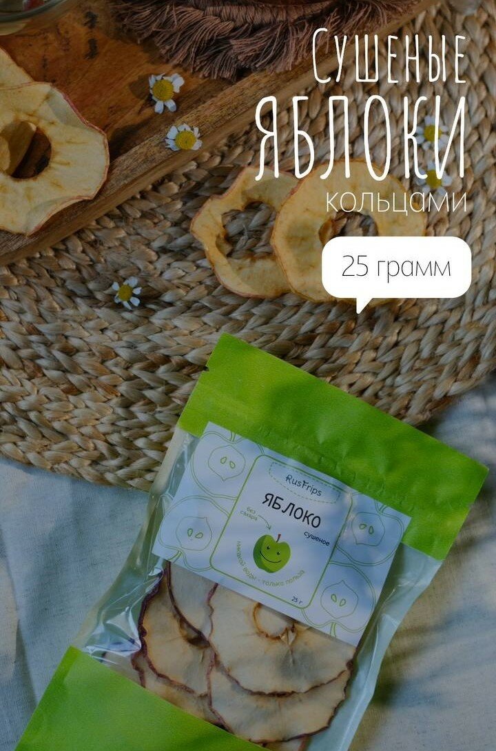 Яблочные чипсы, яблоко сушеное кольцами, полезные снеки RusFrips без сахара 25 грамм информация: