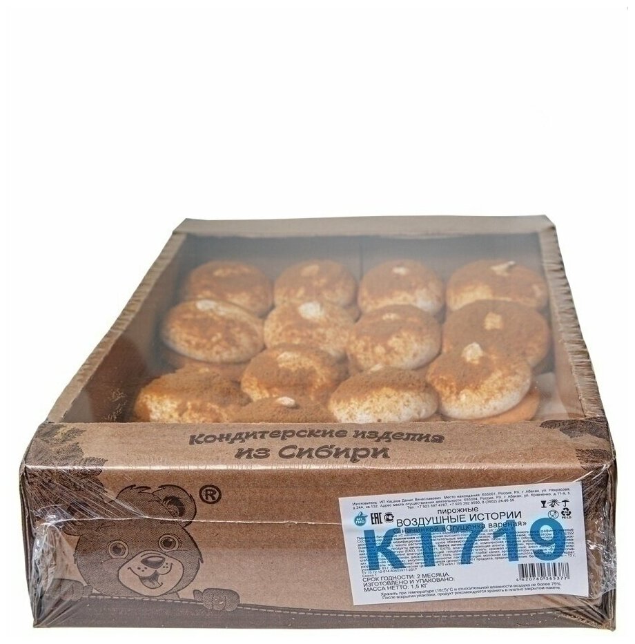 Пирожные бисквитные воздушные истории с отделкой суфле и начинкой "Сгущенка вареная" , 1,5 кг , мишка в малиннике , Сибирский добрыня информация: