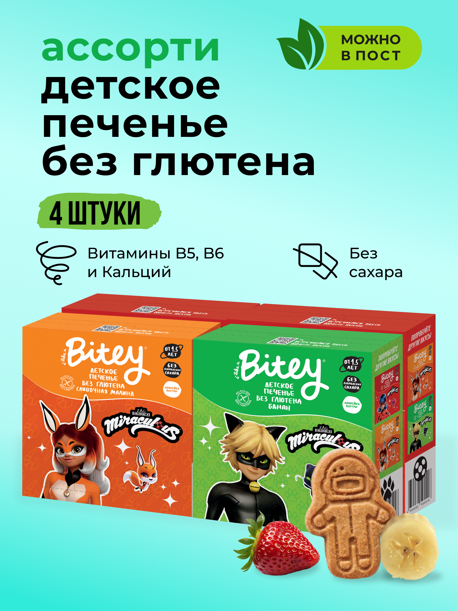 Печенье детское без сахара Take a Bitey / Bite, ассорти 4 вкусов, без глютена, 8 шт по 125 гр информация: