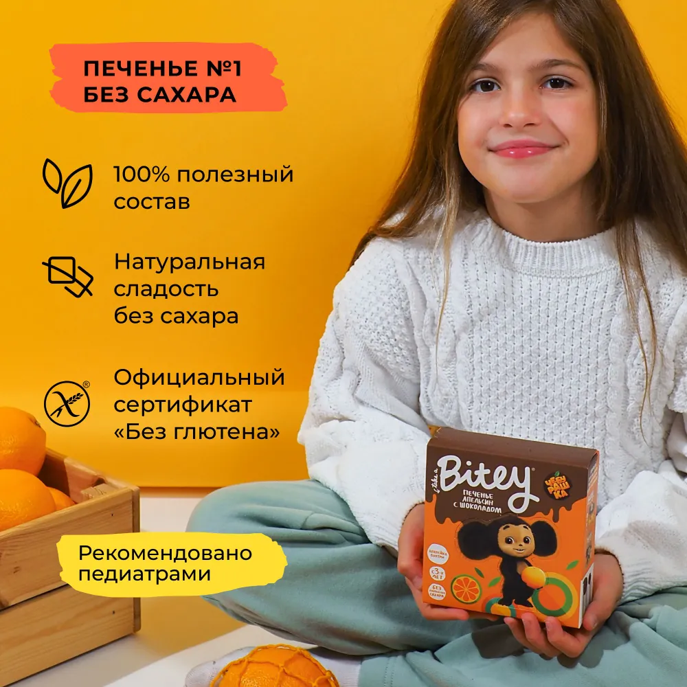 Печенье детское без сахара шоколадное Take a Bitey / Bite х Чебурашка, Апельсин, без глютена, 4 шт по 125 гр информация: