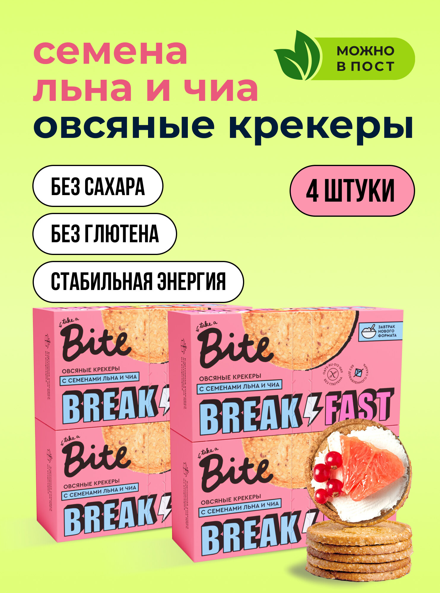 Печенье без сахара овсяное Take a Bite / Крекеры для завтрака, с семенами льна и чиа, без глютена, 4 шт по 200 гр информация: