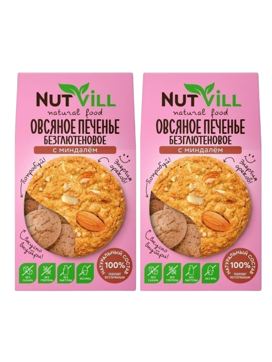 Печенье овсяное безглютеновое "С миндалем" без сахара Nutvill, 85 гр (2 шт. в наборе) информация: