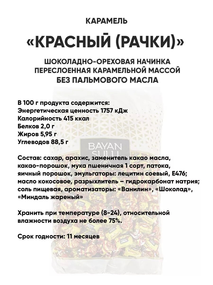 Конфеты карамель с начинкой Bayan Sulu Красный (Рачки), 1 кг информация:
