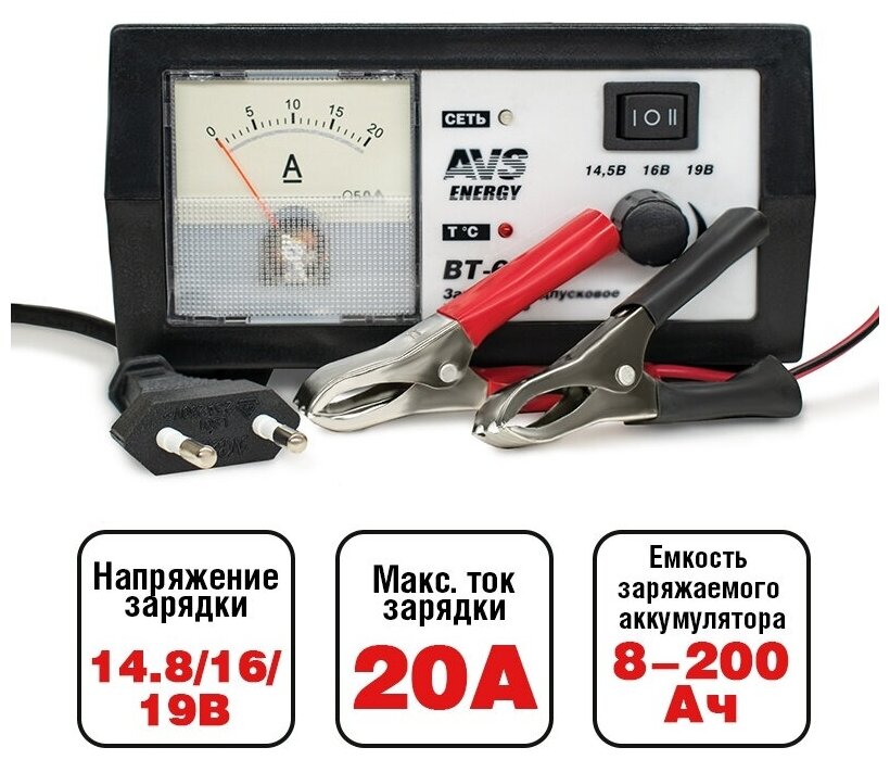Зарядное устройство для автомобильного аккумулятора AVS BT-6030 (20A) 12V информация: