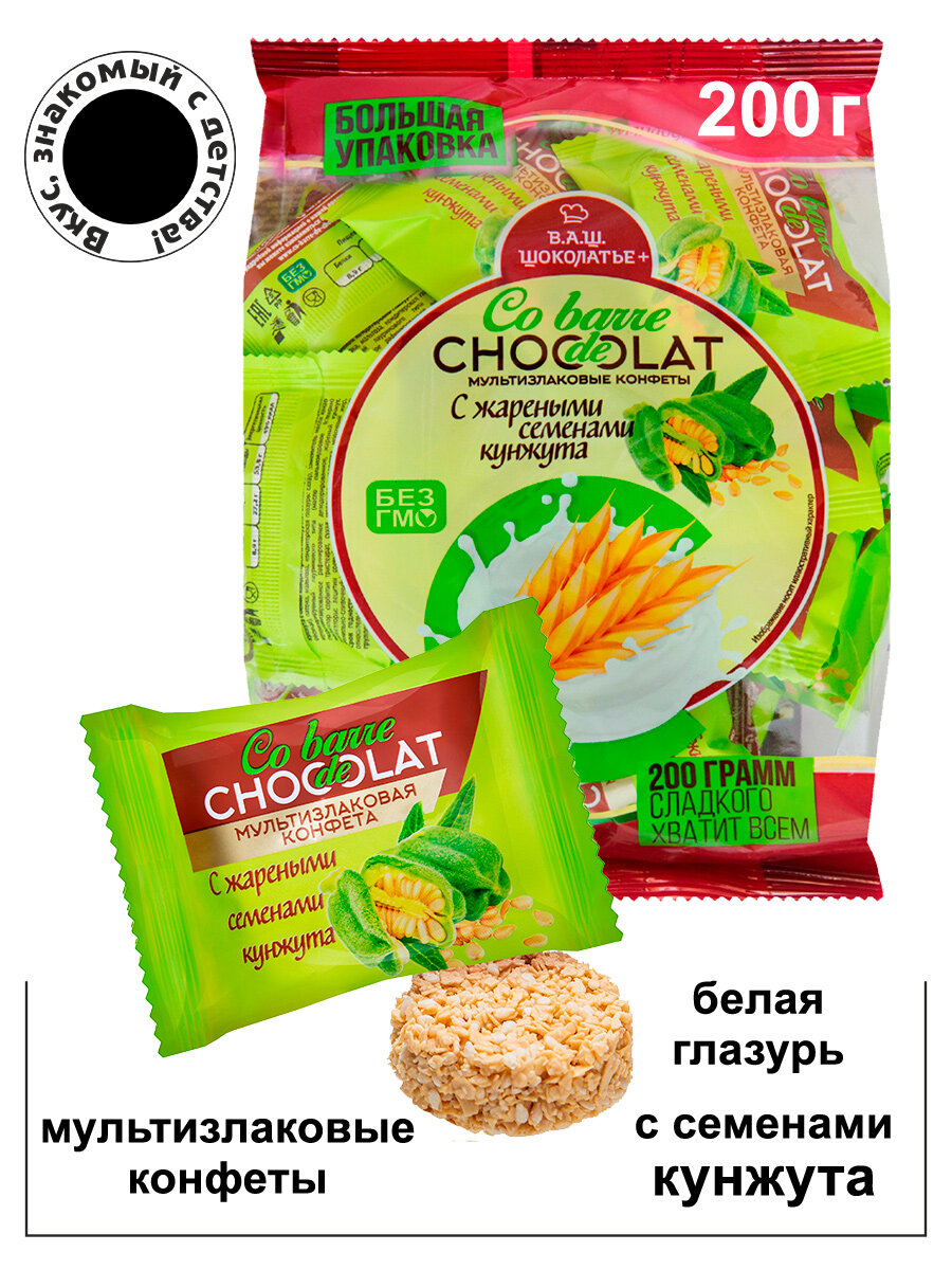 Конфеты мультизлаковые с жареными семенами кунжута с белой глазурью 200г/Co barre de CHOCOLAT/ Вкус, знакомый с детства! информация: