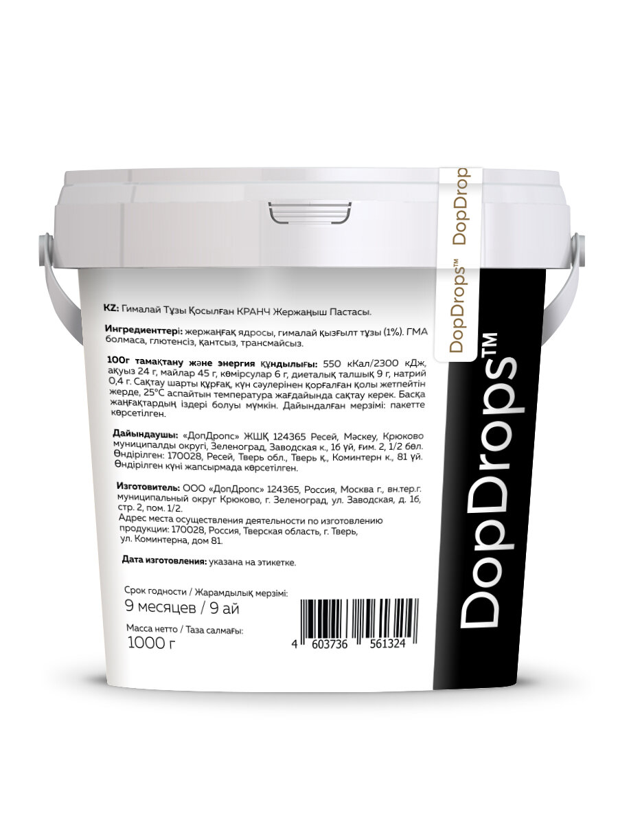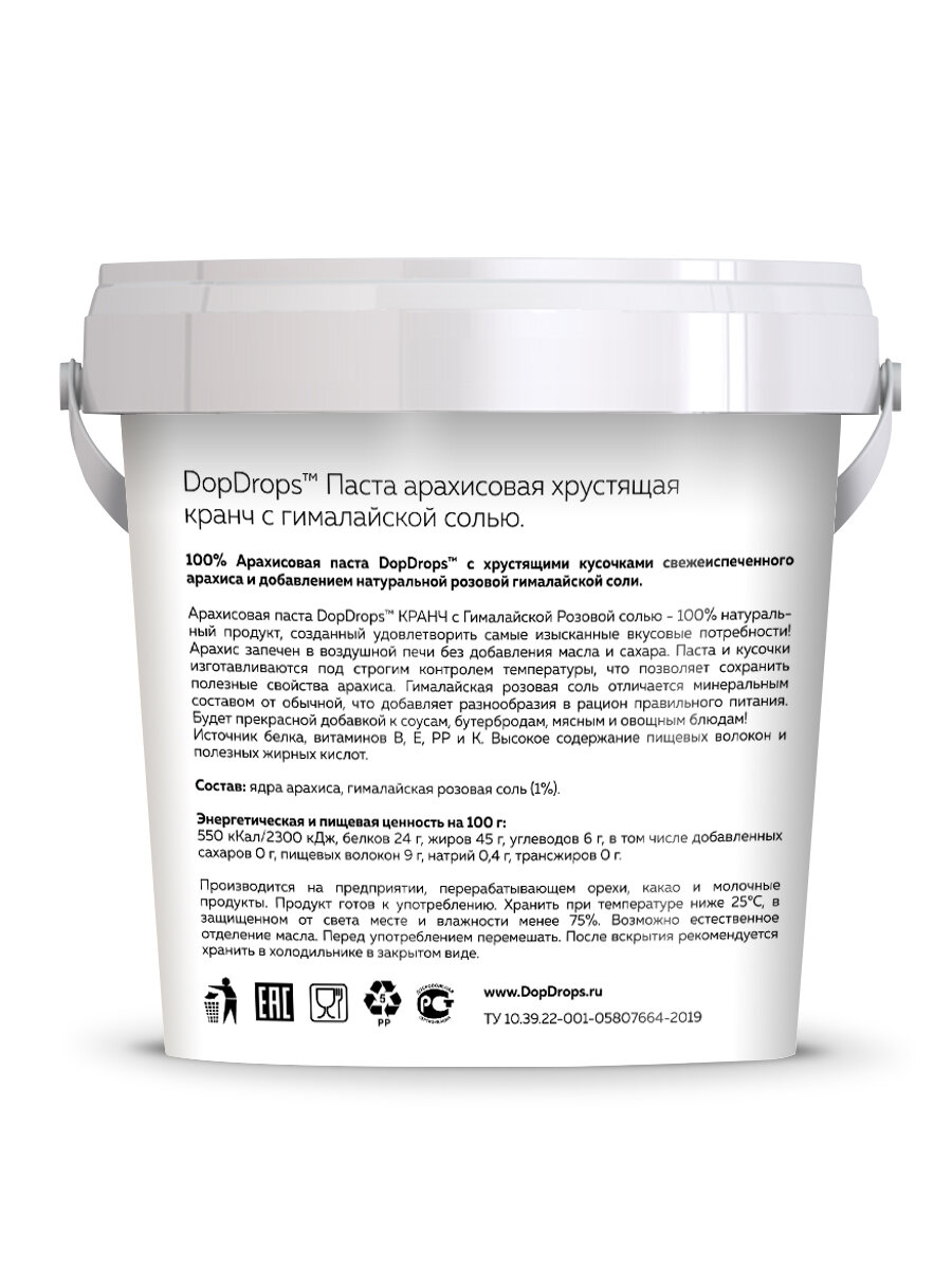 Арахисовая паста DopDrops хрустящая с гималайской солью 1 кг информация: