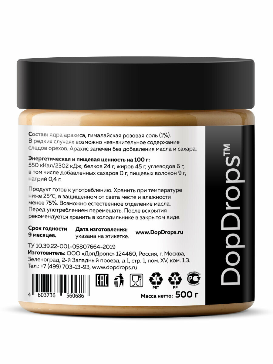 Арахисовая паста DopDrops хрустящая с гималайской солью 500 г информация: