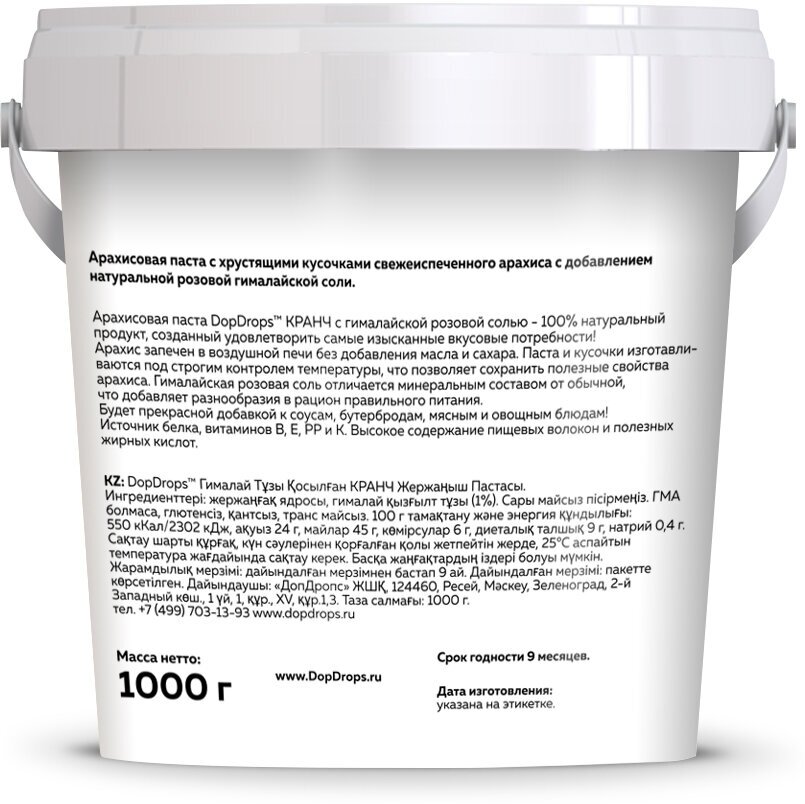 Арахисовая паста DopDrops хрустящая с гималайской солью 2 по 1 кг информация: