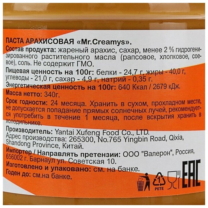 Арахисовая паста Mr. Creamys классическая, 340 гр информация: