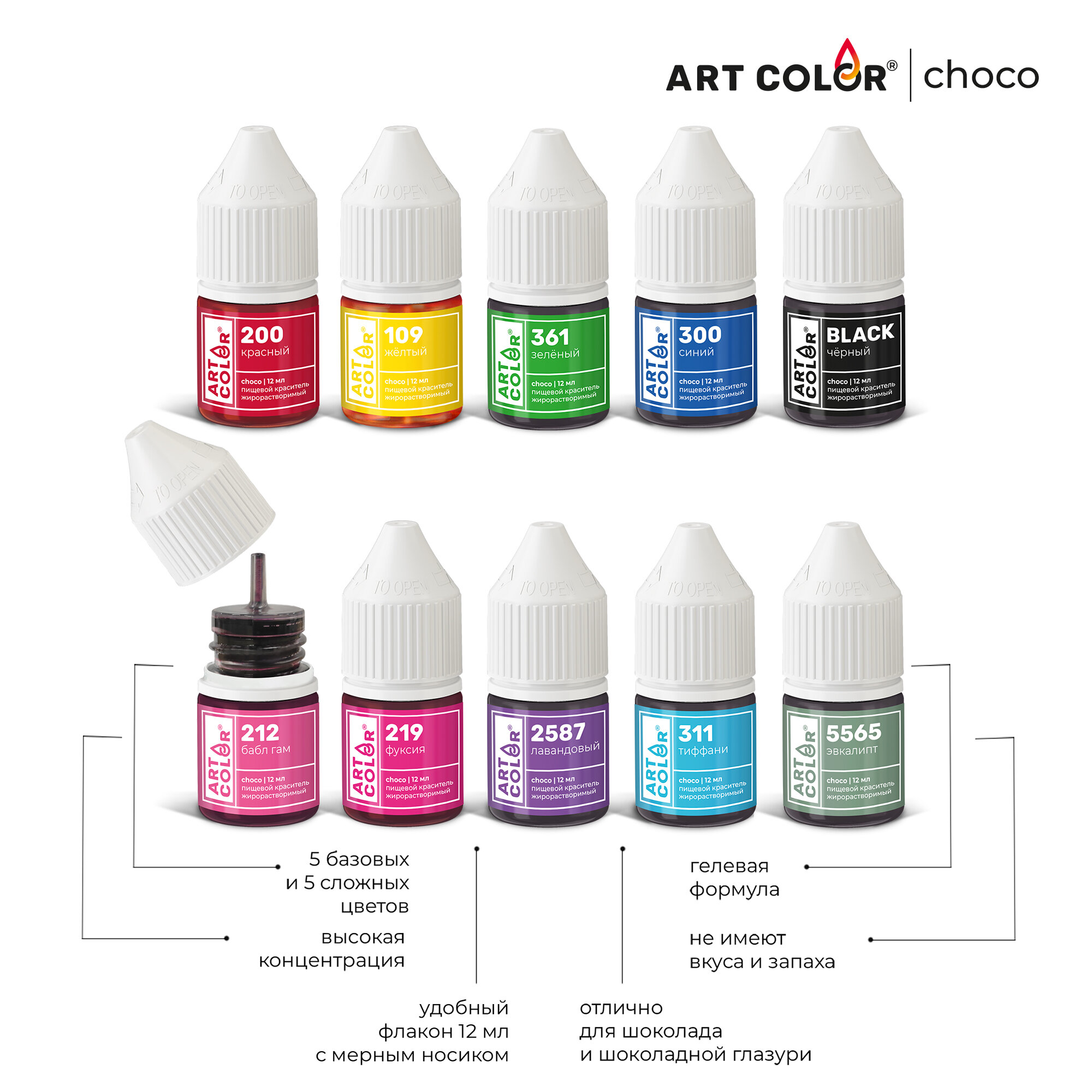 10 цен на Набор пищевых гелевых жирорастворимых красителей ART COLOR Choco, 10 цветов