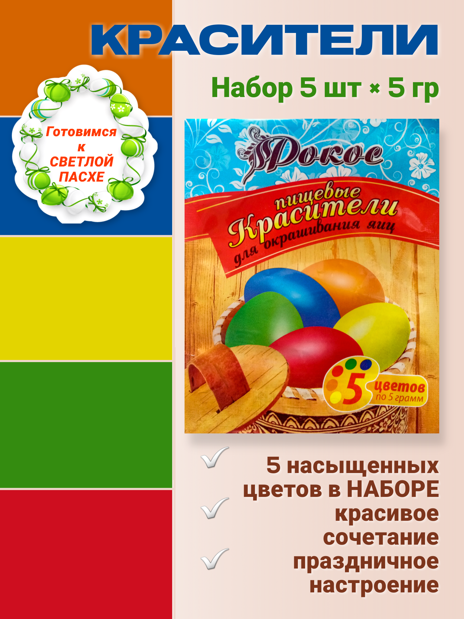 Рокос Набор пищевых красителей сухих для яиц 5шт по 5г информация: