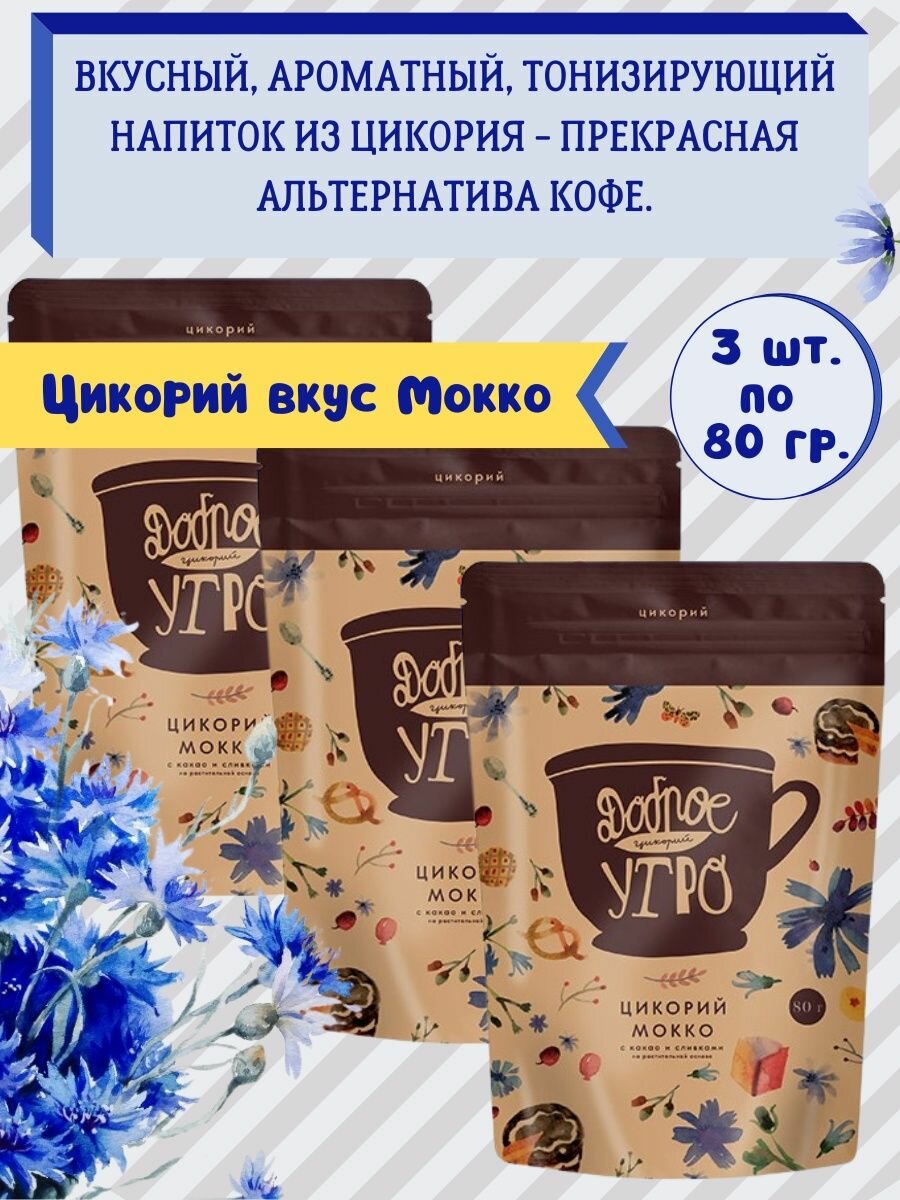 Цикорий натуральный "Мокко" ТМ " Доброе утро" 3 уп. 80 гр. м/у 422 ₽