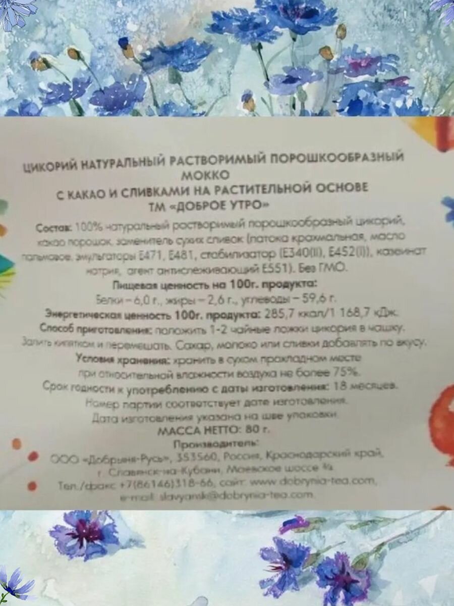 Цикорий натуральный "Мокко" ТМ " Доброе утро" 80 гр. м/у 3 шт. 357 ₽