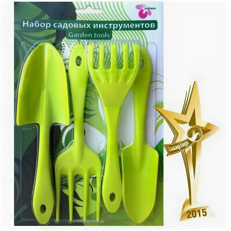 Отзывы на Набор садовых инструментов (лопатка,совок д/пересадки, грабельки, вилка д/рыхления) ING60009