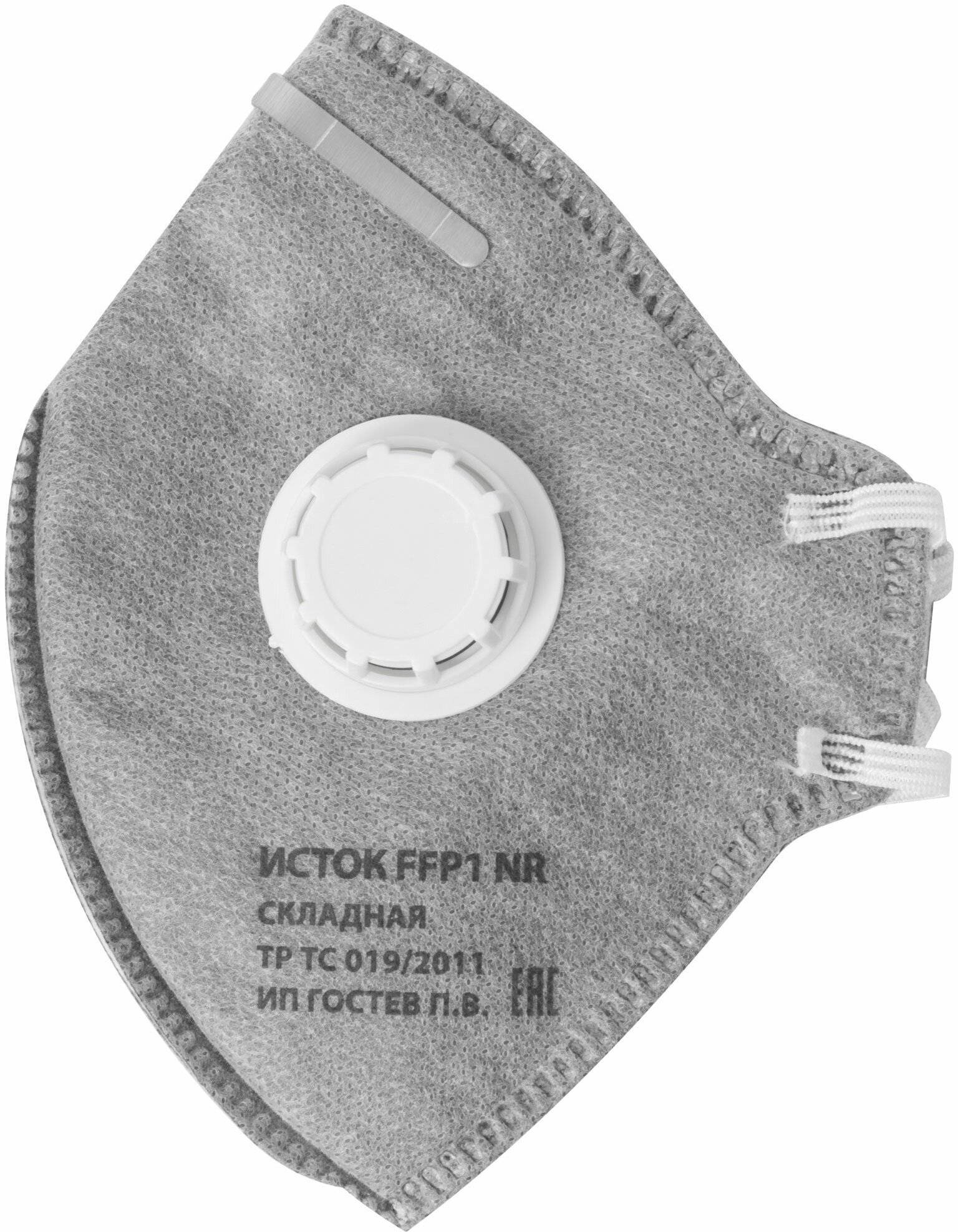 10 цен на Полумаска фильтрующая, FFP1, складная, 5-ти слойная, угольный фильтр, с клапаном