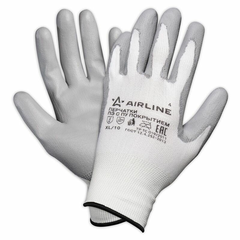 10 цен на Перчатки полиэфирные Airline AWGN02, с цельным ПУ покрытием ладони, (XL), белый/серый (с подвесом)