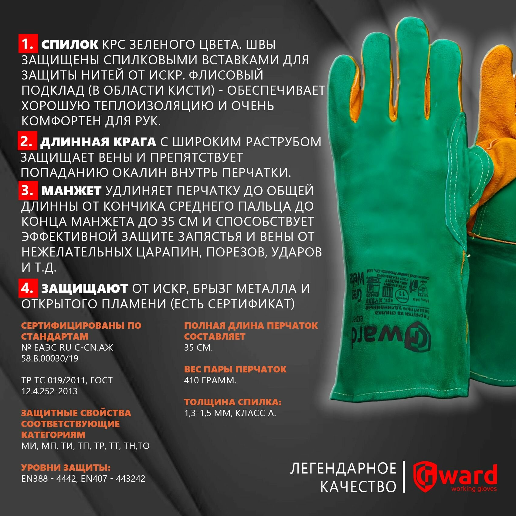10 цен на Краги сварщика с усилением, прошиты огнеупорной нитью, перчатки рабочие Gward Green Welder, размер 11 (XXL), зеленого цвета, 1 пара