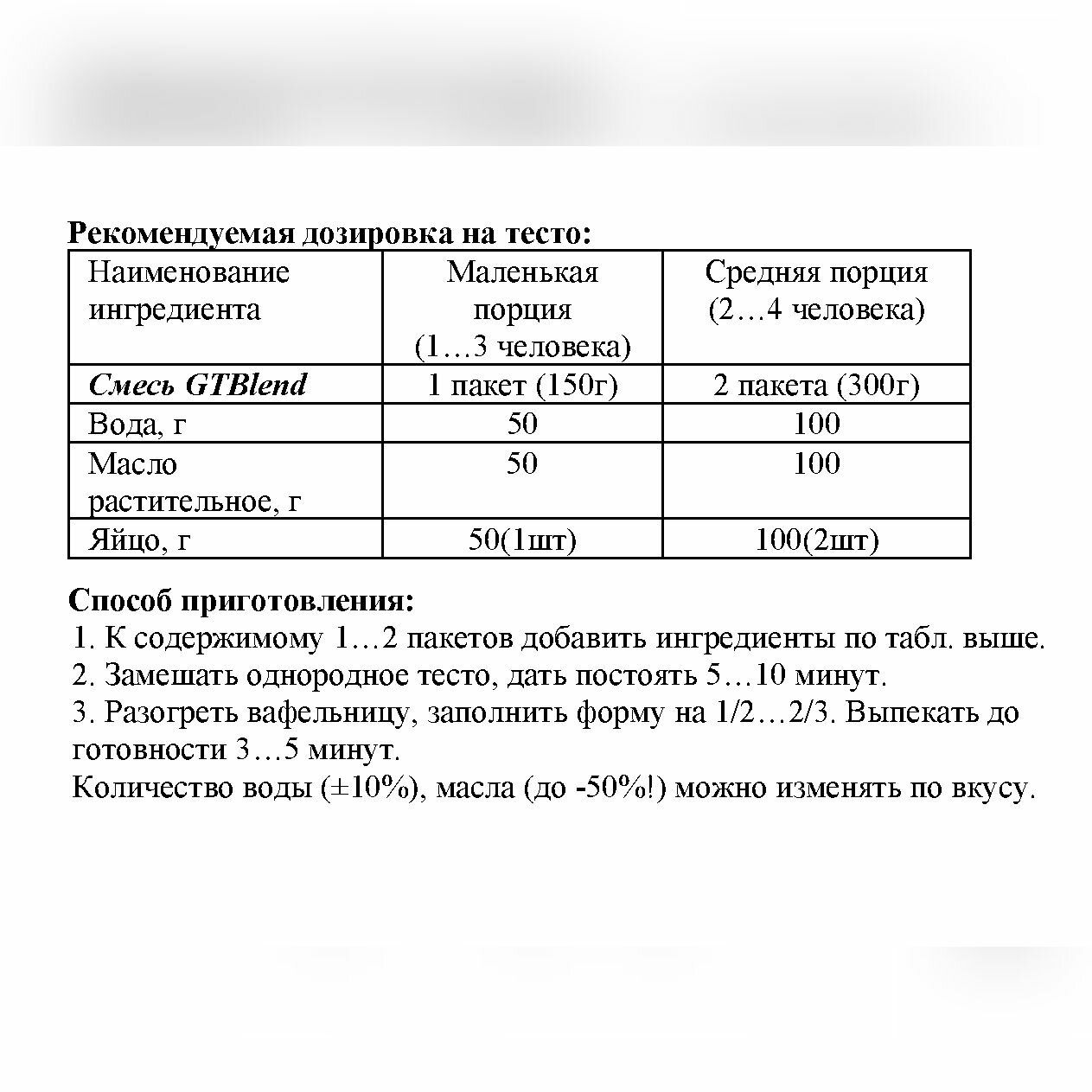 Смесь для венских вафель с ароматом шоколада (GTBlend 1004) информация: