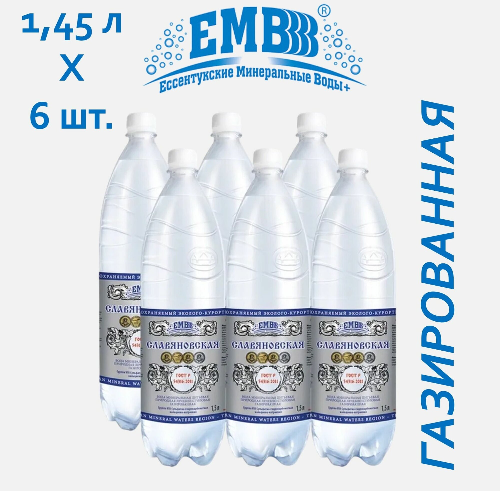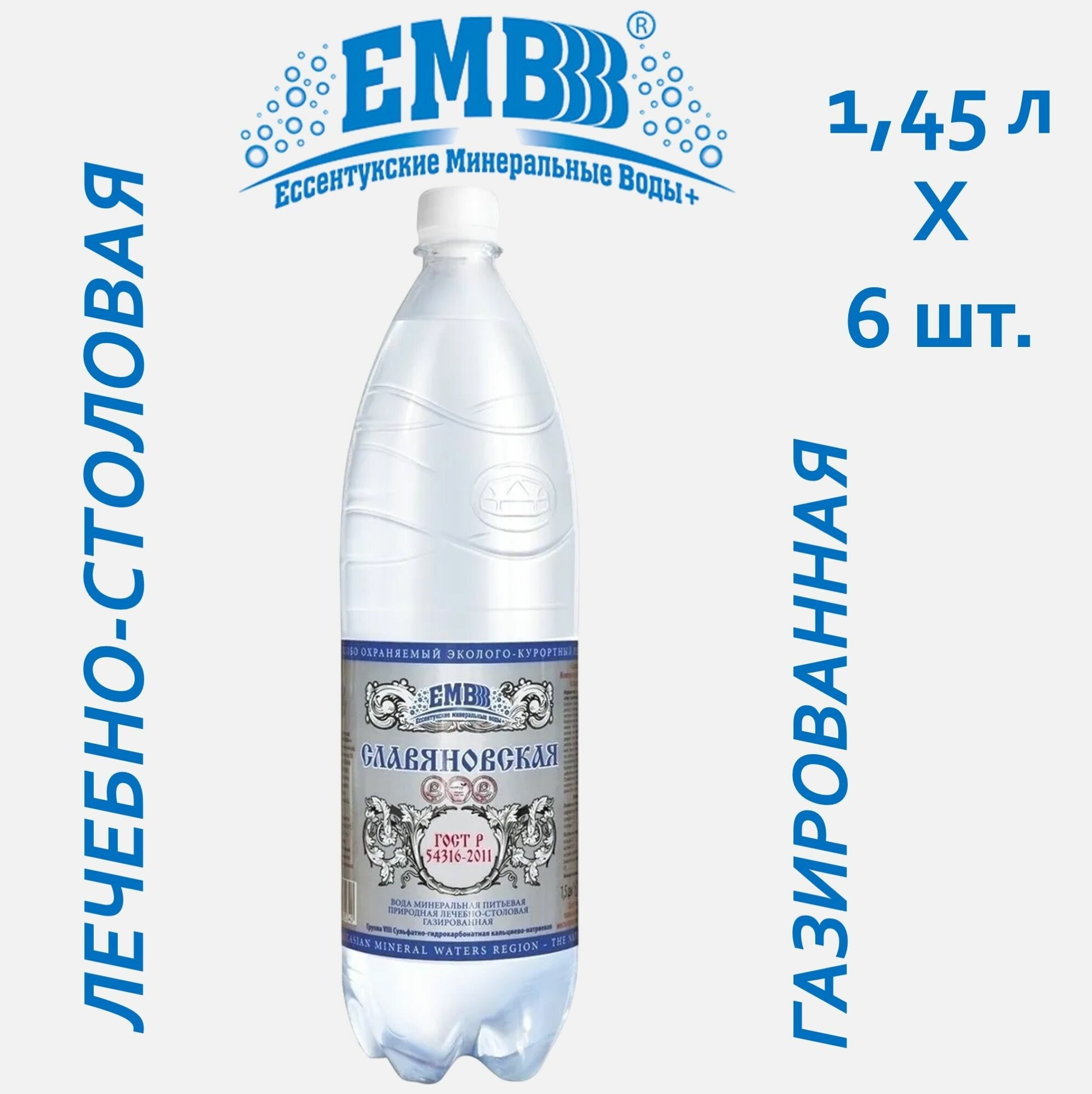 10 цен на "Славяновская" вода минеральная лечебно-столовая 1,45 л х 6 бутылок, газированная, пэт