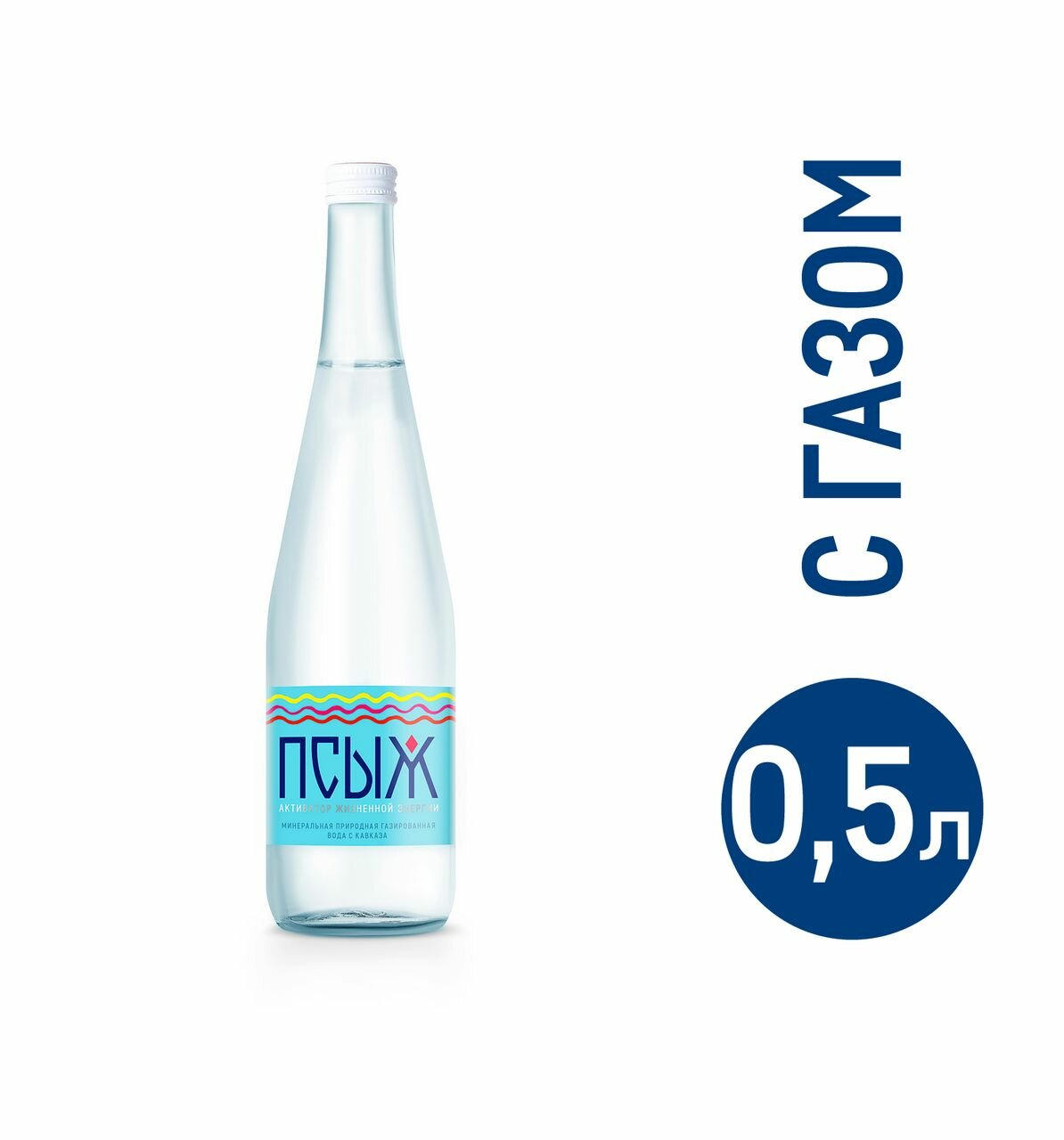 Вода минеральная газированная лечебно-столовая Псыж, 12 шт по 0,5 л, стекло информация: