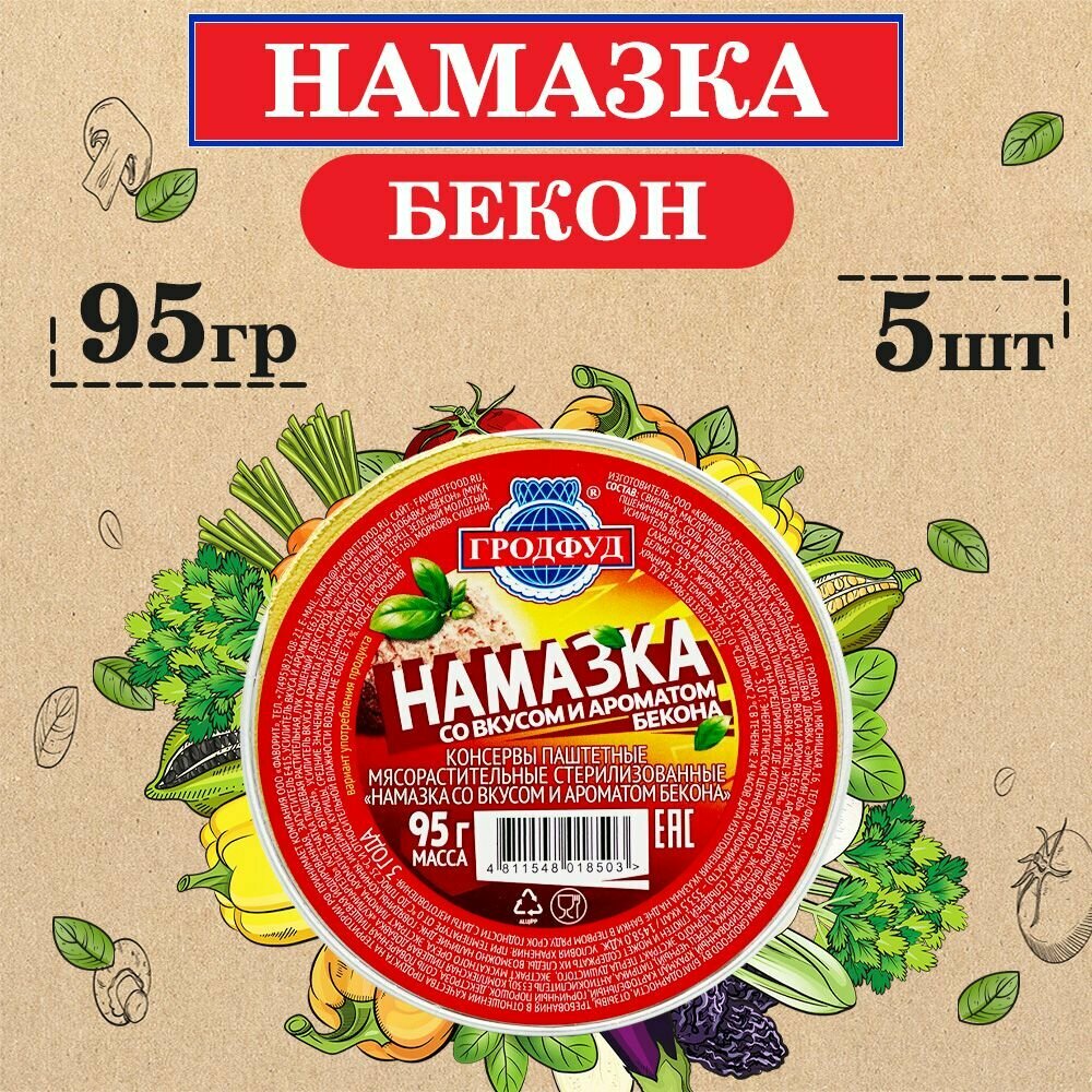 Паштет Намазка со вкусом Бекона Гродфуд, 5 шт. по 95 г информация: