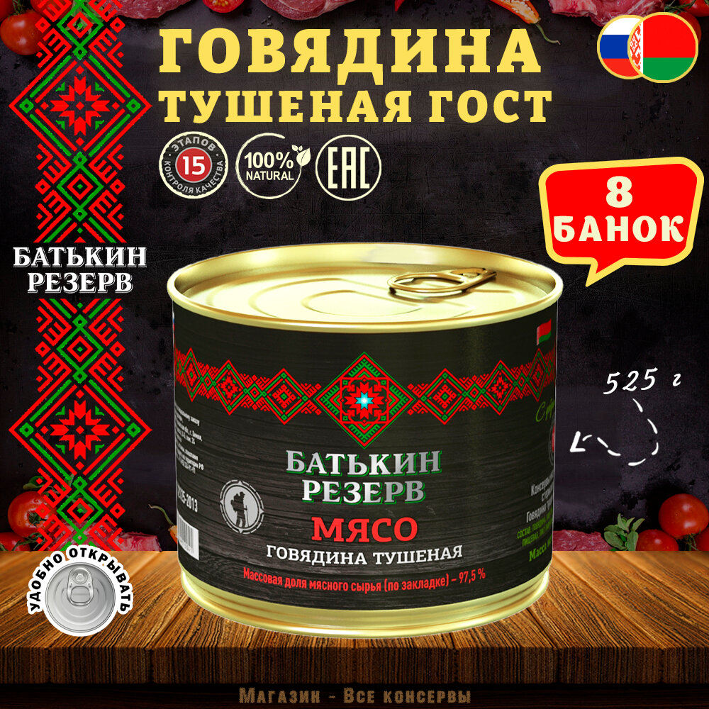 10 цен на Говядина тушеная, Батькин резерв, ГОСТ, 8 шт. по 525 г