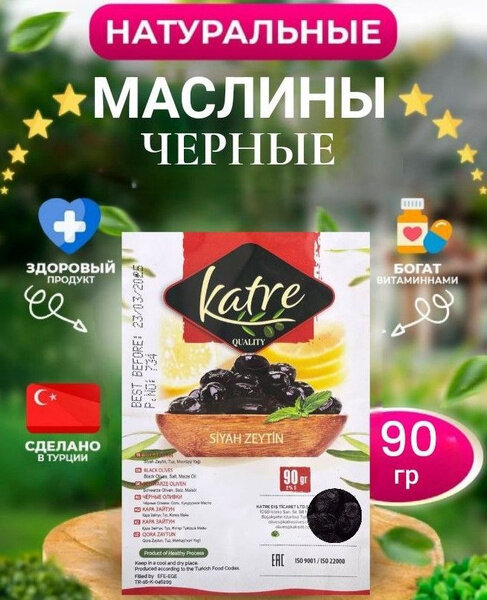 10 цен на KATRE черные маслины в масле, 90гр ( размер М)